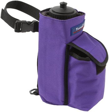 Water Bottle Carrier and Cell Phone Case by Tough-1 These insulated water bottle holders have a handy front pocket with velcro closure for small items like a cell phone. Attaches to any saddle with a nylon strap and dee ring. Measures 9 ½" tall, to ensure the water bottle is secure. Water bottle included! Shown in Purple.