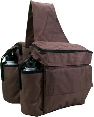 Insulated Nylon Bag! A durable insulated saddle bag constructed of 400 denier nylon, quilted with polyfill insulation. Perfect for keeping trail essentials at hand and food and drinks fresh and secure. Each side of this bag features an insulated water bottle pocket with the bottles. Each side has an oversized 10" x 12" insulated compartment with a 3 ½" gusset and top flaps with velcro closures. Both sides also feature a 9" x 7" exterior pocket to keep important items separated. Dual D-rings for easy attachment to saddle.